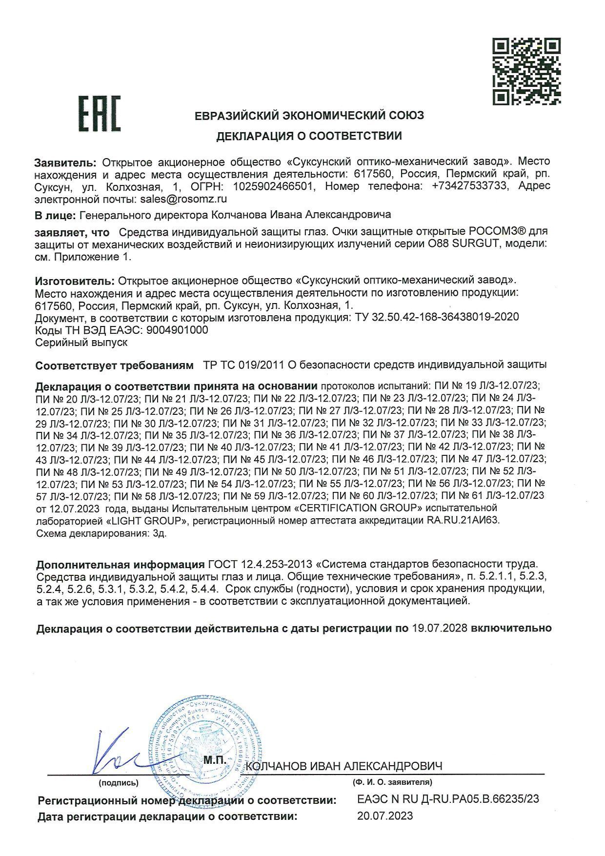 [DESCRIPTION] => Защитные очки O88 «Сургут» от РОСОМЗ — это ультрасовременное средство защиты глаз, созданное для универсального применения в различных условиях. Очки оснащены сферическими защитными линзами из оптически прозрачного поликарбоната, что обеспечивает четкое и комфортное зрение без искажений. Благодаря первому оптическому классу линз, очки подходят для длительного использования, сохраняя высокий уровень комфорта и снижая нагрузку на глаза.