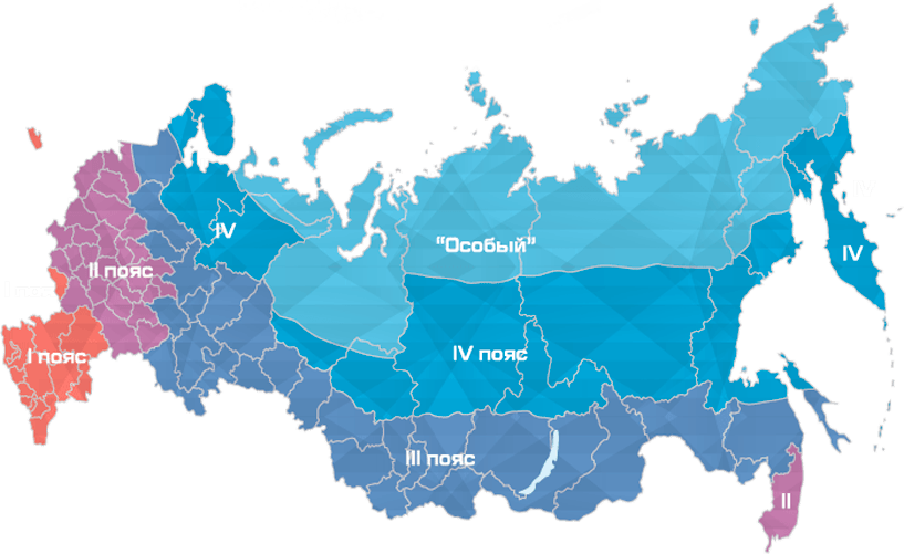 Регионы, находящиеся в зоне особого климатического пояса: